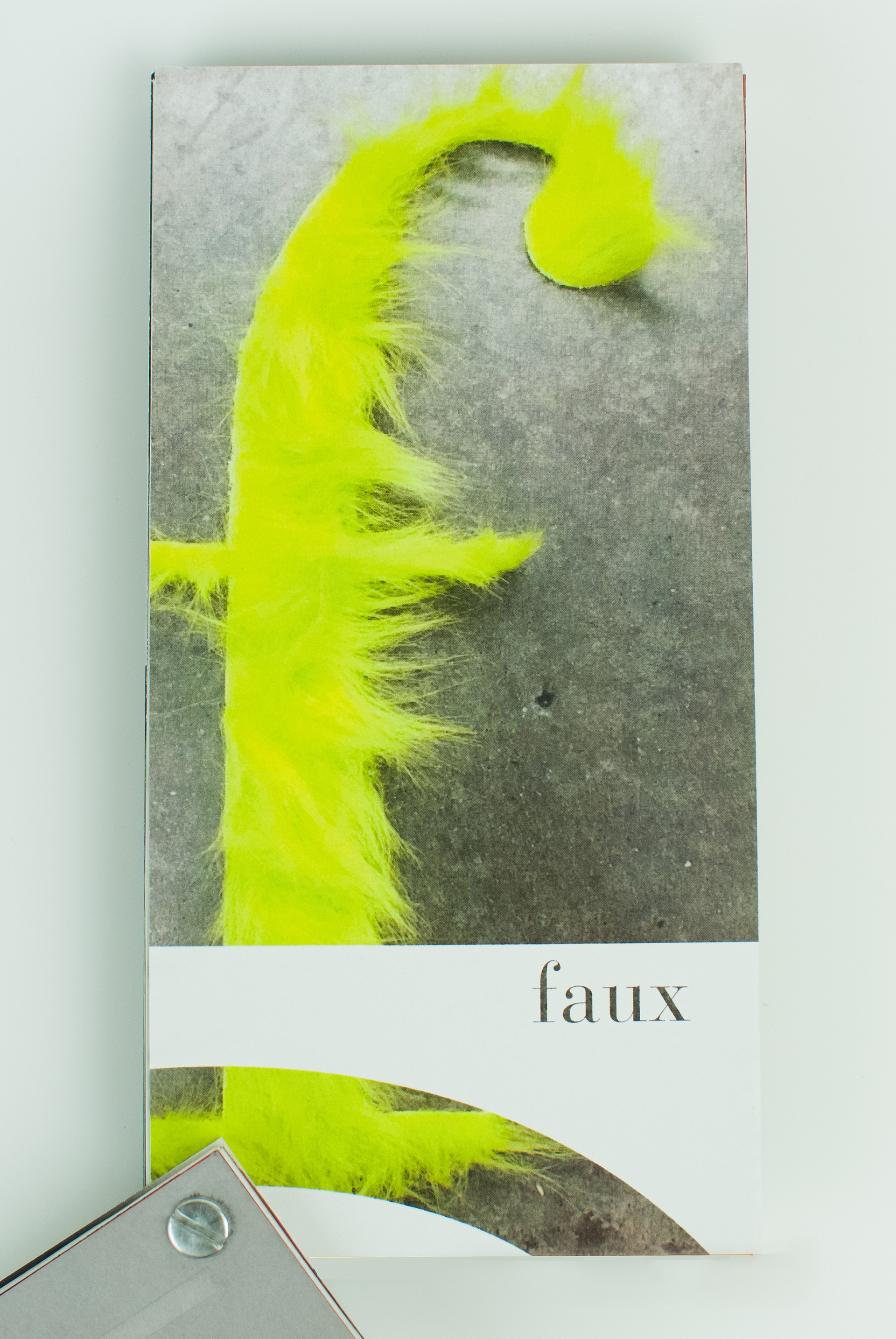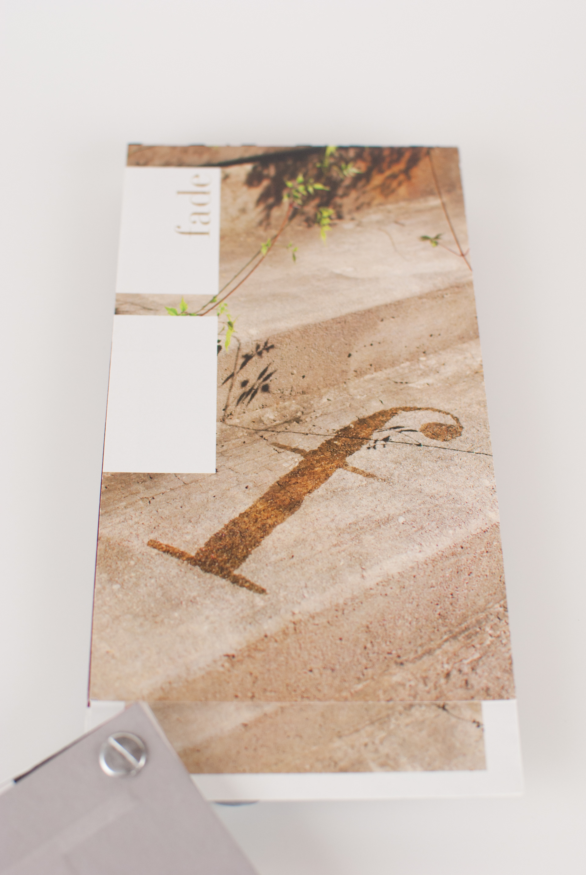 This editorial project explores the physical form of the letterform "f" from the Bauer Bodoni typeface.Through crafting this letterform out of a variety of materials, I discovered ways to emphasize the contrasting thicks and thins, as well as the straight lines with the curve of the ball terminal. The creation process allowed one version to lead to the next with the final composition; fade (shown above) truly demonstrating the key attributes of this form. The exploration resulted in a 32 page screw post bound book with several fold out pages. Each page contains one version of the letterform with a title contained in a cropped portion of the "f" letterform. The back of each page is a full bleed unique pattern crafted solely from the letterform. Working with typography in this way reveals the beauty and character of each letter, and the variety of moods that can be derived from just one.