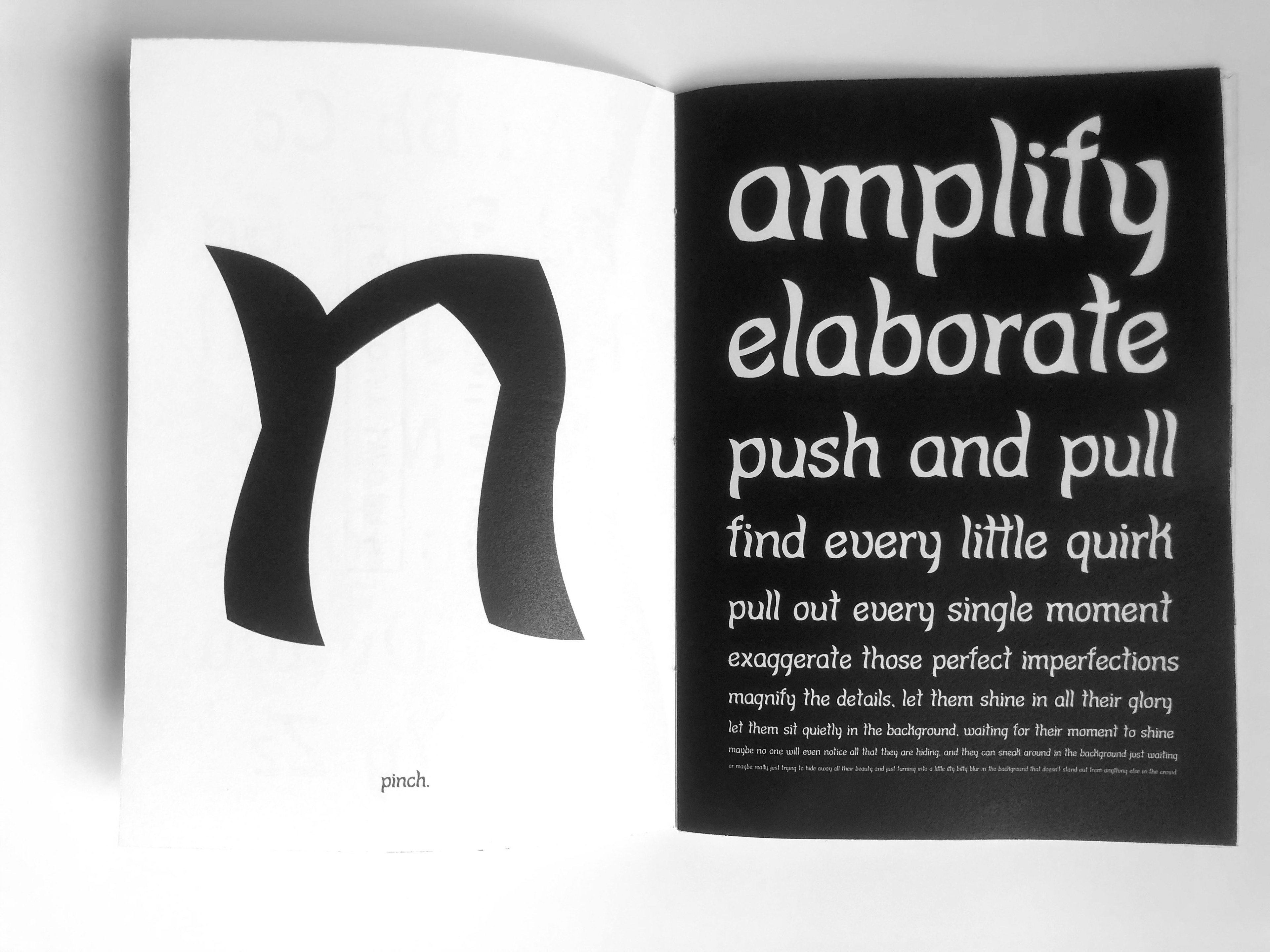 Pinch was pulled from the letterforms of casual brush lettering used in sign painting. It finds the quirks of these letterforms and amplifies them, finding a harmony between the angles and sweeping curves made by each stroke of the brush.