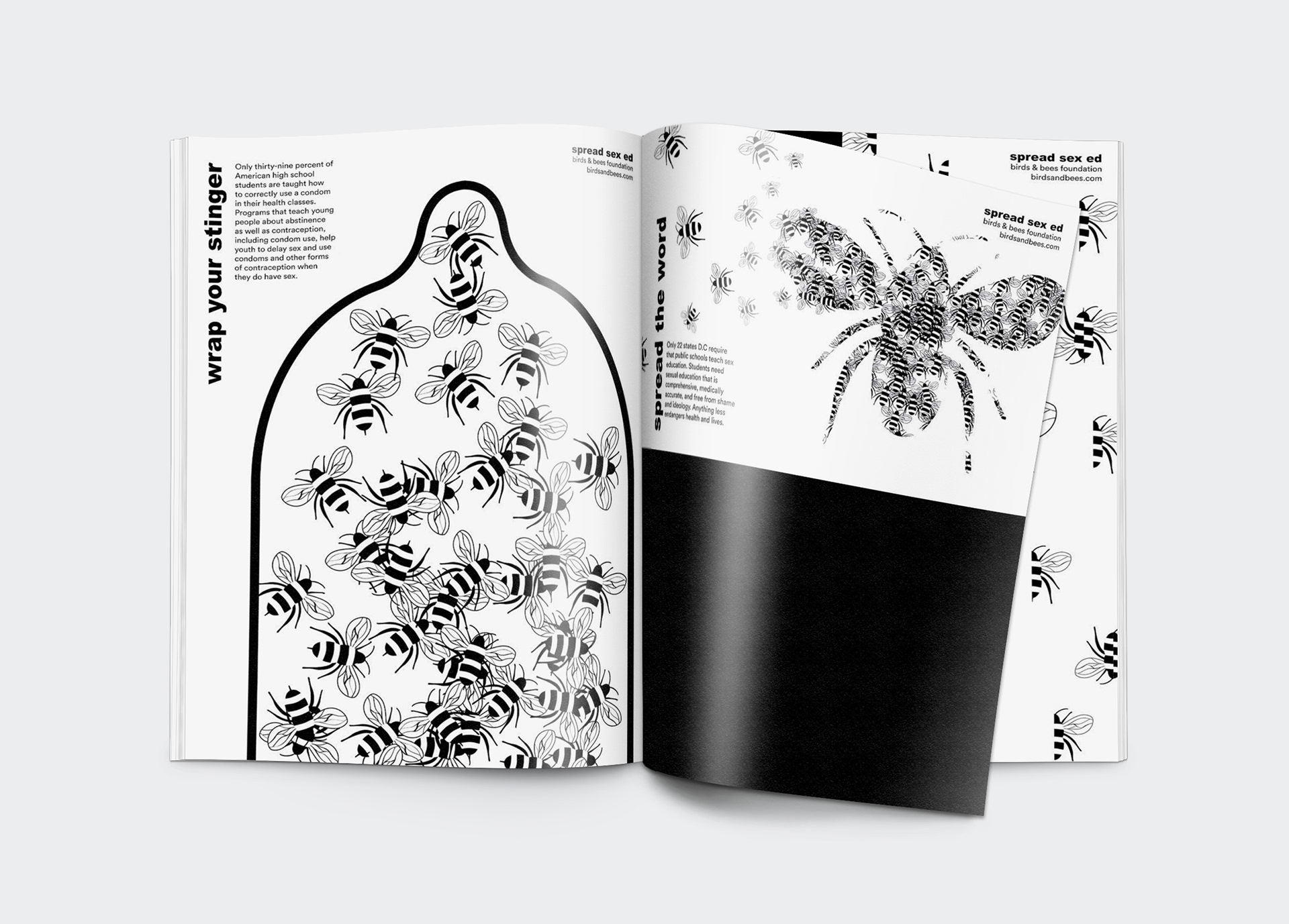 Advertising campaign for spreading sex education, built around an icon of a bee which symbolizes the desemination of ideas and offers the metaphorical relationship of the stinger.